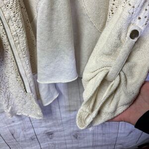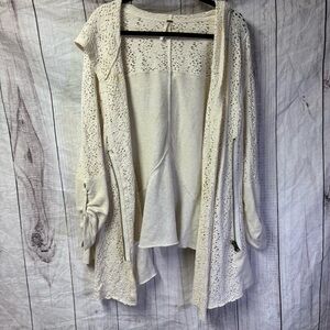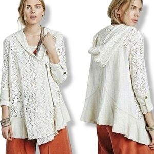 Elegant white lace top with an asymmetrical design. Perfect for layering. Stylish and versatile.