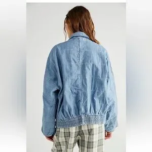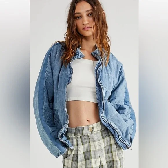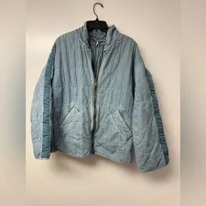 Free People Dolman Quilted Denim Jacket Medium Chambray Boho Zip Jacket