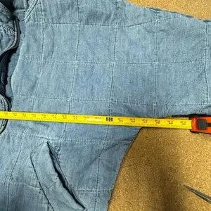 Pre-owned in good condition. Light staining is present on one sleeve consistent with normal wear. No holes or major damage. Please review photos for details.