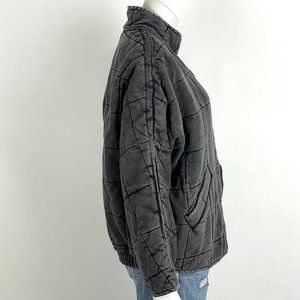 Free People Dolman Quilted Knit Jacket Oversized Zip Front Black Medium