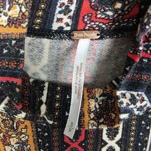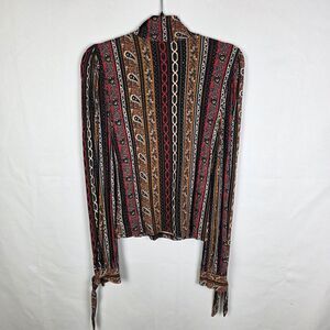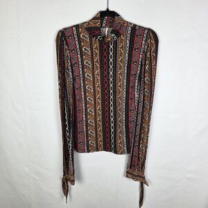 Free People Donatella Mock Neck Small Tie Sleeve Black Gold Red Floral Paisley