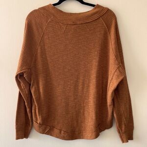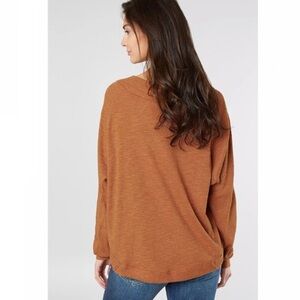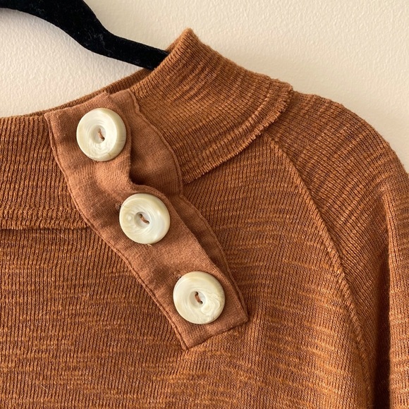 I don’t think I’ve ever worn it I would say new without tags it’s perfect condition. Color is cedar! Super cute buttons on the side can be worn up or open.