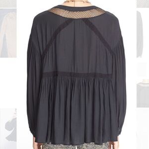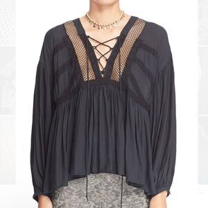 Free People 'Don't Let Go' Peasant Top black Goth fishnet vampire corset size S