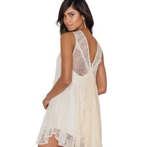 Free People Don't You Dare Boho Lace Mini Dress Size Small Cream Color