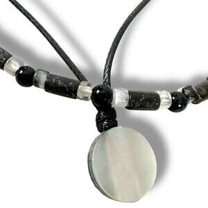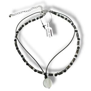 Features: Layered style, choker design, beaded chain, cord with mini pendant, adjustable clasp closure