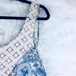 Free People Dorothy Blue Floral Crochet Babydoll Tank Top