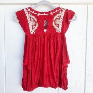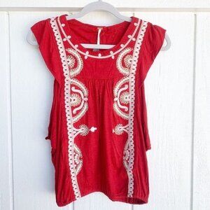 Free People Dos Segundos Embroidered Red Blouse Women's Size Small S