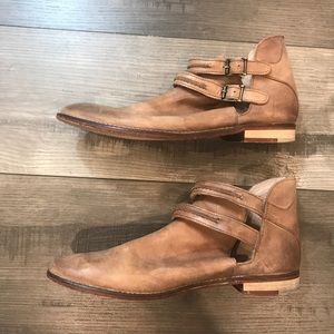 Free People Double Buckle Booties Distressed Tan