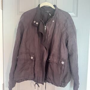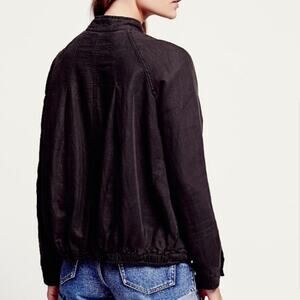 Free People Double Cloth Black Bomber Zip Up Jacket