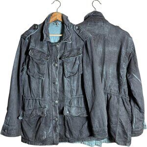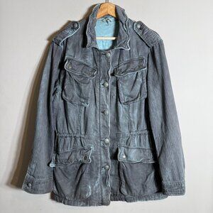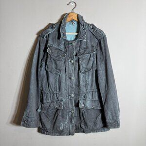 Free People Double Cloth Military Jacket Women's Medium Gray Blue Boho Pockets
