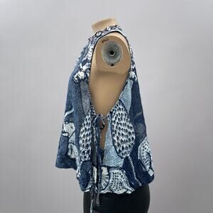 Free People Double Dutch Elephant Side Tie Crop Tank Blue Women's Size Small