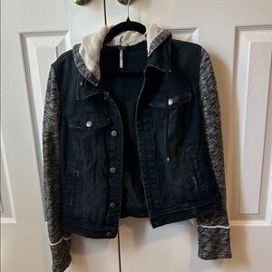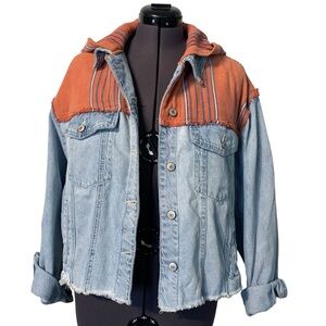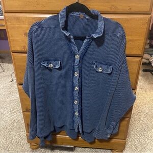 Free People Double Weave Distressed Denim Sweatshirt Jacket Women's S Thrashed