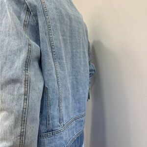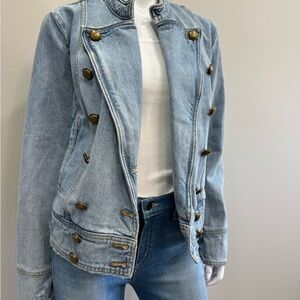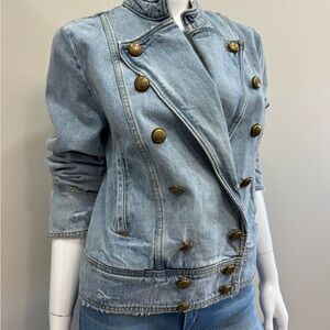 Free People Double-Breasted Military Moto Light Blue Denim Jean Jacket Band