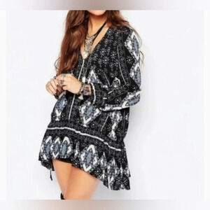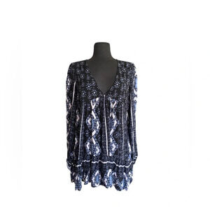 Free People Down By The Bay Tunic Top Dress size Small Long Tie Sleeves …