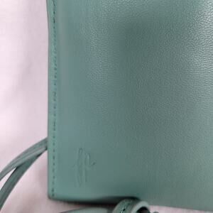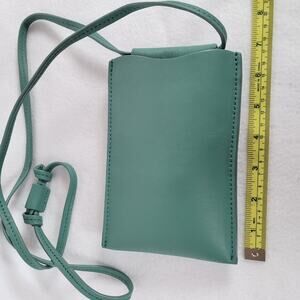 Free People Downtown Leather Lanyard Phone Holder Crossbody Green Card Slot Boho