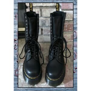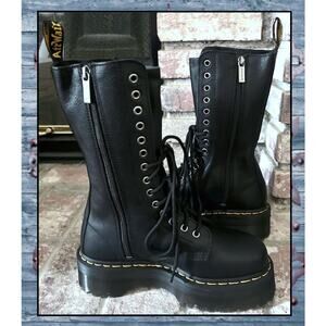 Free People Dr. Martens Black Tall Pisa 14-Eyelet Leather 1B99 Quad Boots Size 7