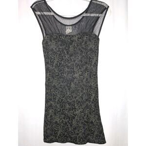 Free People Dragonfly Black Whimsigoth Festival Mesh Gold Metallic Mini Dress XS