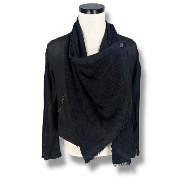 Free People Drape Front Moto Jacket Women’s 8 Black Denim Cotton Long Sleeve