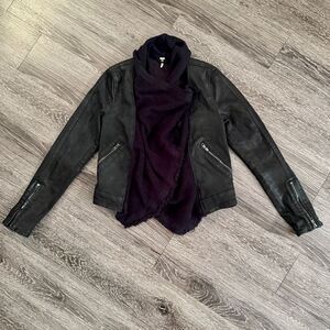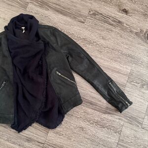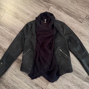 Free People Drape Front Black Waxed Denim Waterfall Moto Jacket