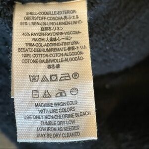 An interior drawcord creates a feminine peplum waist on a linen-blend jacket with a cold-weather-ready fleecy interior