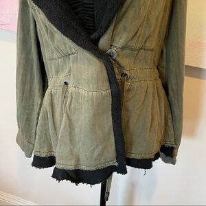 Free People Drawcord Waist Slouchy Jacket Small Olive Green Fleece Interior.