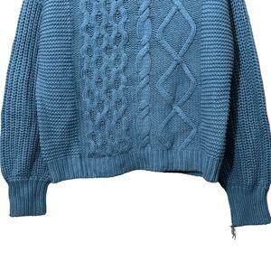 Free People Dream Cable Blue CHUNKY Crew Neck Sweater NWOT Size XS FLAW