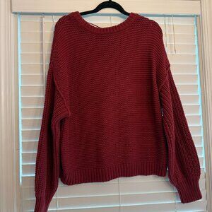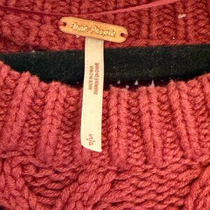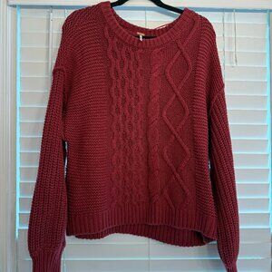 Free People Dream Cable Chunky Knit Crewneck Sweater in Cabernet (Size: S)
