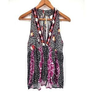 Free People Dream Darlin' Printed Deep V-Neck Top Women’s Size Small