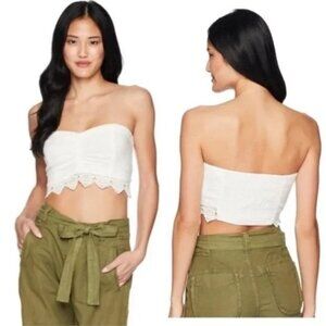 Free People Dream Lover Strapless White Linen Crochet Crop Top