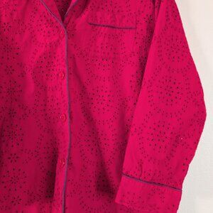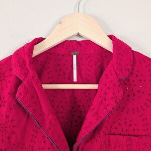 Free People Dream Together Collared Button Up Red Eyelet Top - Women's XS