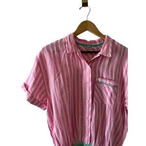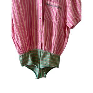 New Free People Dream in Color Oxford Cloth Short Sleeve Bodysuit Pink Stripe, size S. Only button tag is attached. Perfect spring & summer oversized shirt in pink candy stripe. 100% cotton.