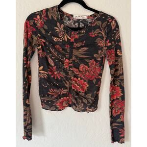 Free People Dreamed of You Charcoal Floral Print Long Sleeve Top XS