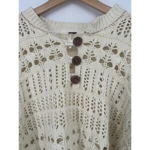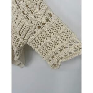 Free People Dreams Tonight Crop Chunky Open Knit Sweater Small Ivory Boho Hippie