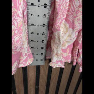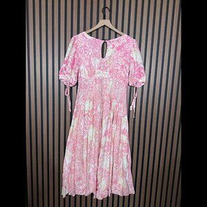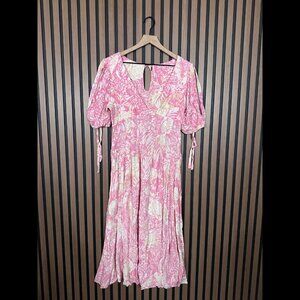 Free People Dress 6 / S Womens Pink Floral Sleeve Tie Keyhole Neck Midi