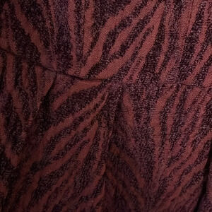 Gorgeous mulberry colored dress with an incredible thick texture and fun print. It’s got pockets! Zip closure at back. 16” at bust and 31” long. Zipper needs to be replaced 🥹