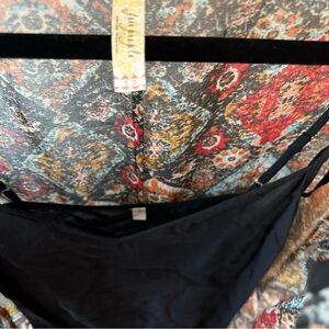 Good pre loved condition Semi-sheer. Dress has a black slip High low style Front length 36.5in Back length 47.5in