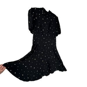 Free People Dress Abbie Printed Reversible Mini Dress Black Size 8 Puff Sleeve