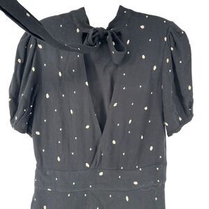Free People Dress Abbie Printed Reversible Mini Dress Black Dot Print Short Sleeve Puff Sleeve Zip Closure Wear As Surplice V Neck With Neck Tie Or As Mock Neck