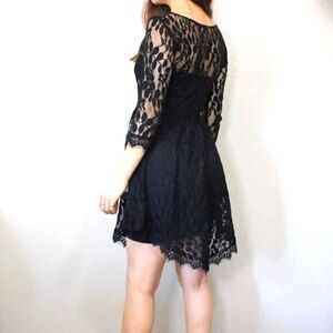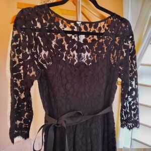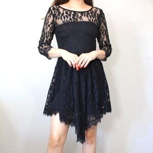 Free People Dress Black Lace Boho 'Queens Love' Mini Ribbon Waist