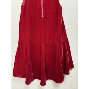 This Free People dress is a stunning dark red velvet sleeveless dress with a hi-low hem, perfect for special occasions. The dress features a round neckline, front keyhole opening, and a zipper closure. Made from polyester, it is machine washable for easy care. The dress is designed for a size XS, ideal for a wedding, party, or any special occasion or event during the winter or fall season. With a sexy and designer feel, this dress is a stylish choice for any occasion.