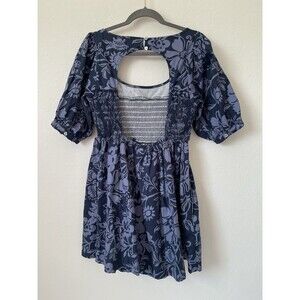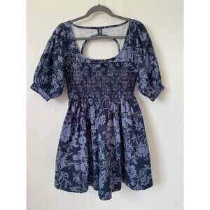 Free People Dress -Dear Delilah Blue Floral Puff Sleeve Smocked - Size M NWOT