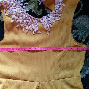 Beautiful sleeveless golden yellow dress with lace collar and keyhole back.