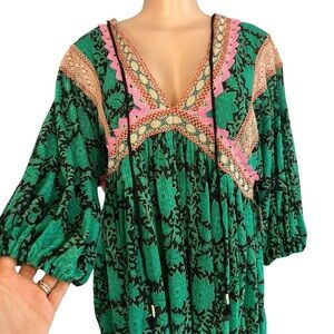 Free People Dress Green Small Bohemian Gypsy Bells Fall Short