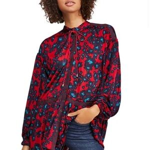 Red blue Floral print mini can be worn as a long tunic with leggings or jeans, or as a dress.
