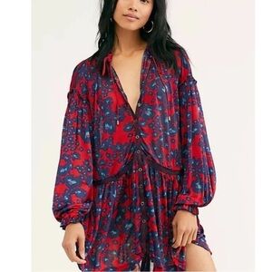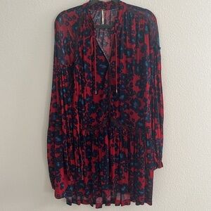 Free People Dress Merlot Combo Love Letter Tunic Red Blue Boho Floral Mini S
