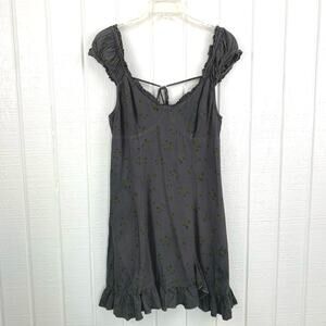 Free People Dress Mini Sweetheart Coquette Boho Gray Floral Milkmaid Size Medium