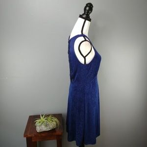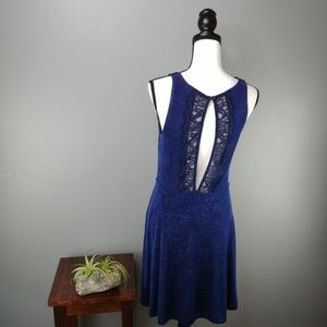 New with tags! Silky, flirty, stretchy jacquard fit and flare dress with lace-trimmed back cut out. Waist curves up in the front. Perfect for a night out, a dance, a holiday party, or wherever you want to be sophisticated yet sexy. 92% acetate 8%spandex. Never worn, no flaws, still has tags. Offers welcome!