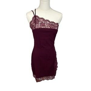 Free People Dress Premonitions Bodycon Bloom Wine Stretch Lace Size Medium