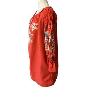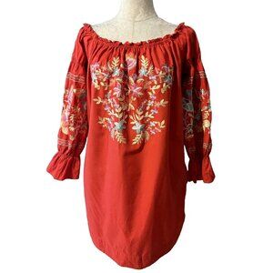 Free People Dress Red L Large Cotton Off Shoulder Embroidered Washable