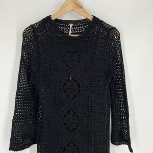Free People Dress Size Small Womens Black Mini Crochet Sweater Rosalind Boho